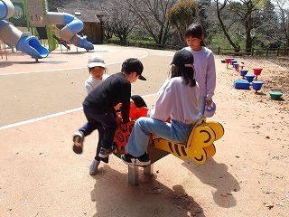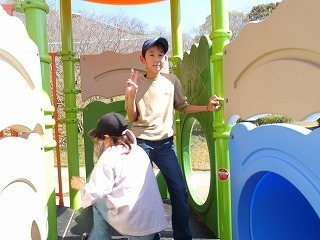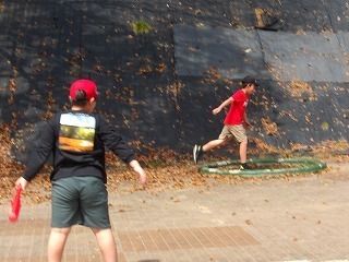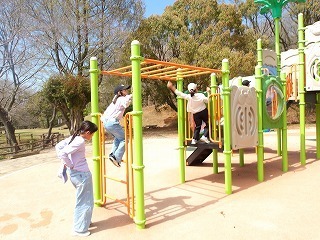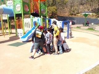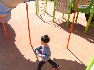 こどもたちは新しい遊具で登ったり下りたりフリスビー鬼ごっこをいたしました。