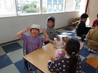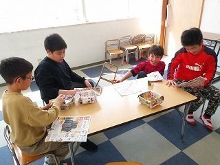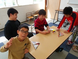 紙の箱、紙風船を作りました。