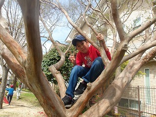木に登りたがる...。