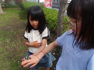 アゲハチョウを女子が観察