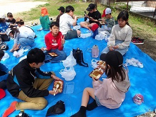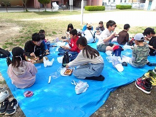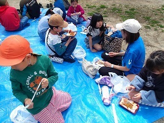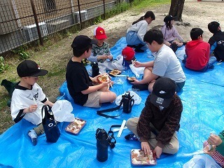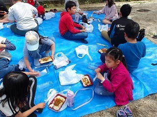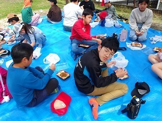 みんなで外で食べるお弁当はおいしい!