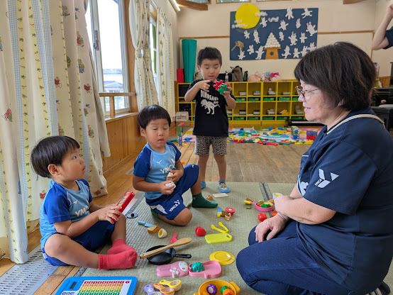 2歳児、3歳児クラスのお友だちは、保護者の方のお手伝いの時間、先生たちと遊んですごします。お当番以外の時間は、カヌー体験やゲームコーナーで遊んだり、キッチンカーで美味しいものを買ってもらったりと楽しい一日となりました。卒園児さんもたくさん遊びに来てくれて先生たちにとっても嬉しい時間となりました。