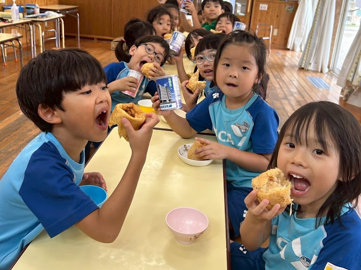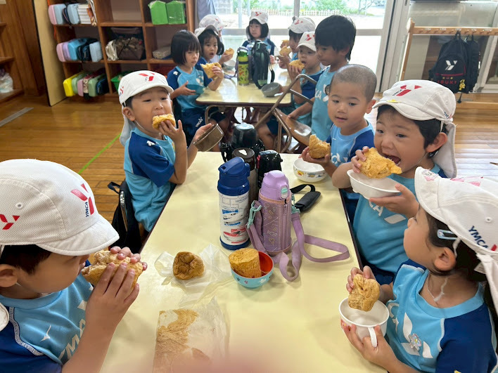 その後缶パンをみんなでいただきましたが、オレンジ、いちご、ブルーベリー三種類の味があり、ふわふわで美味しかったです。ご家庭にも持ち帰っておりますので是非お試しください。またご家庭でも子ども達と非常時について話し合い備えをして頂く機会となれば幸いです。