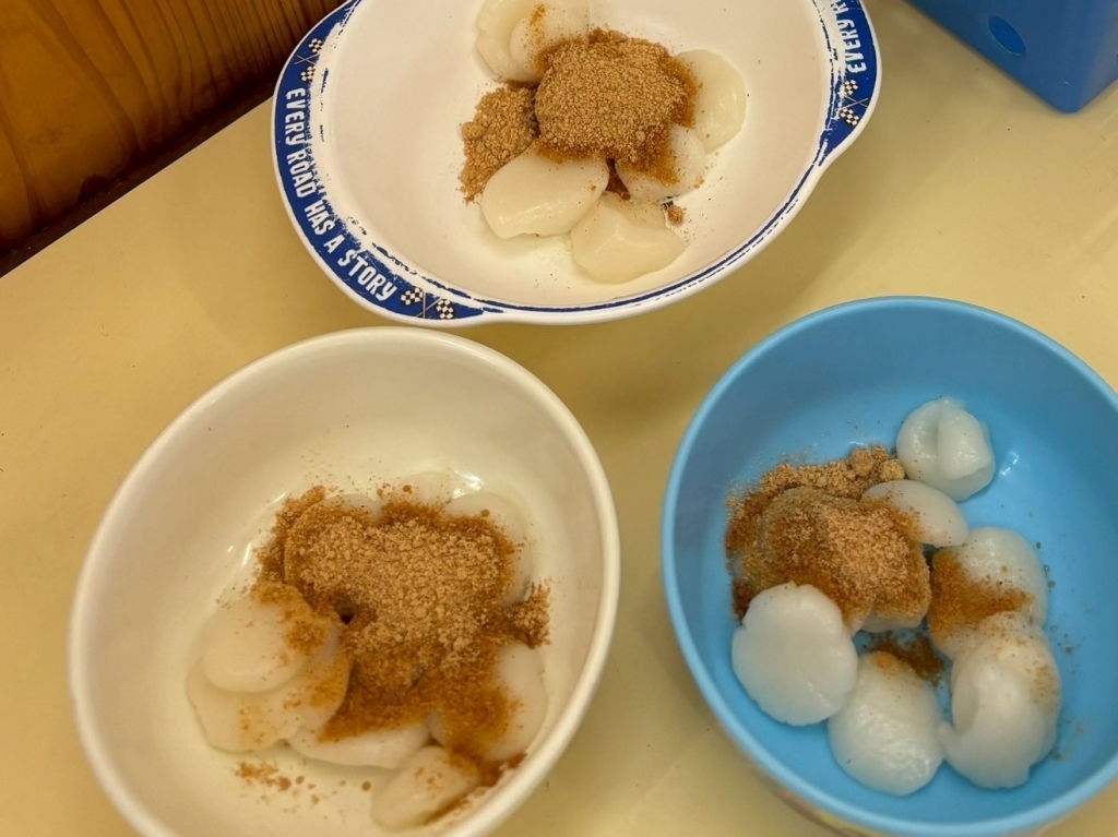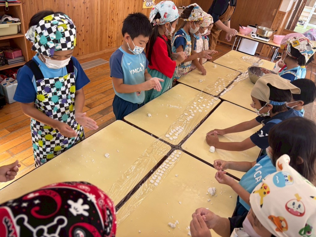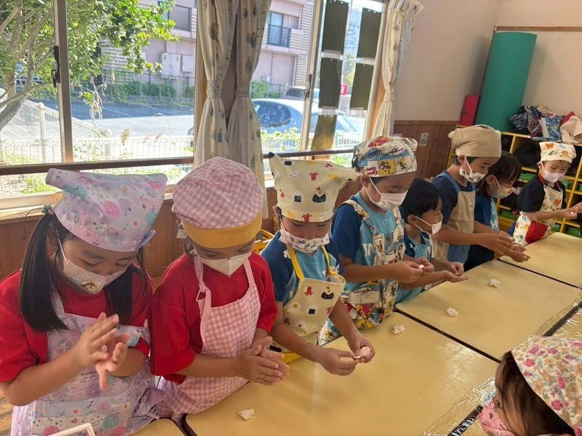 2025年10月6日(月)今日は中秋の名月。年長児クラスはお月見団子づくりに挑戦しました。