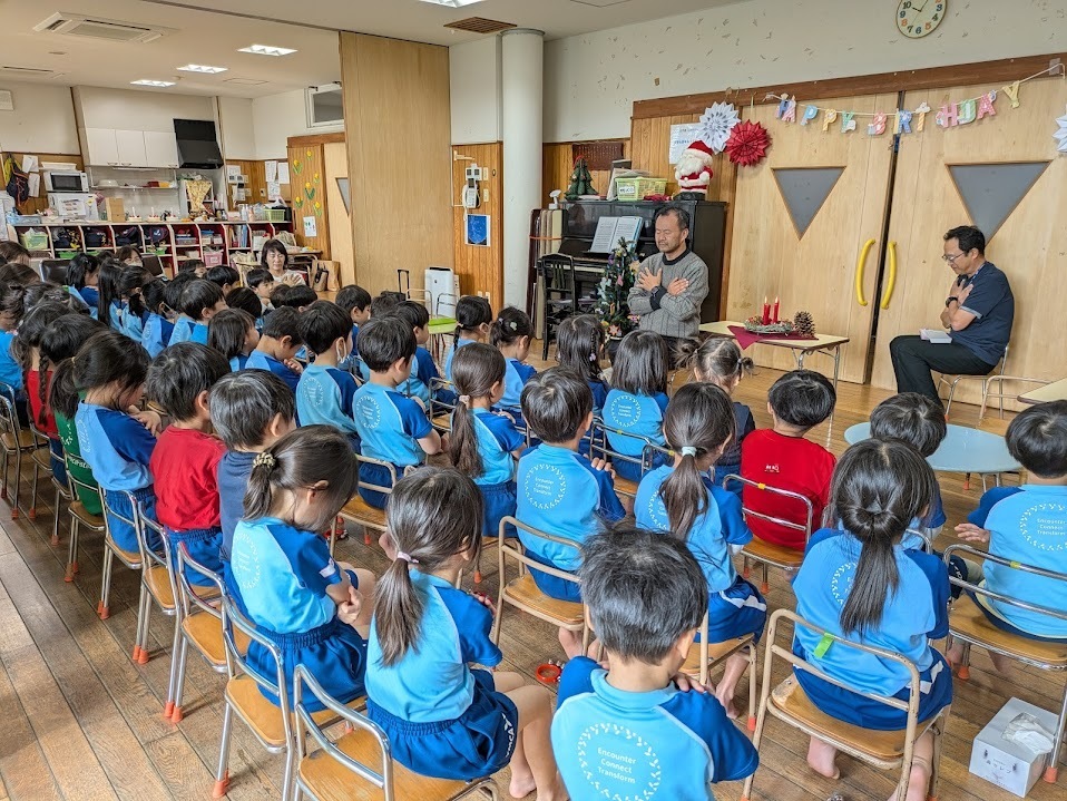 優しいお話に耳を傾ける子どもたちの姿はとても穏やかで、クリスマスを待つ気持ちが深まるひとときでした。先生のお話にあったようにみんなでクリスマスを待ち望む時間を大切に過ごしたいと思います。