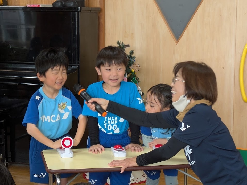 先生の出し物『○×クイズ』では、わかった瞬間に「ピンポン!」と押せるのが嬉しくて、子どもたちは前のめりに参加していました。早く押したい気持ちがあふれ、会場は笑顔とワクワクでいっぱいでした♪