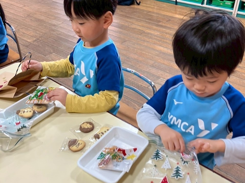 最終日は大掃除をしたり、ホットケーキ作りを楽しんだり、お菓子をクリスマス柄のパッケージにつめてプレゼントをつくったりと、どのクラスも笑顔あふれる一日になりました。