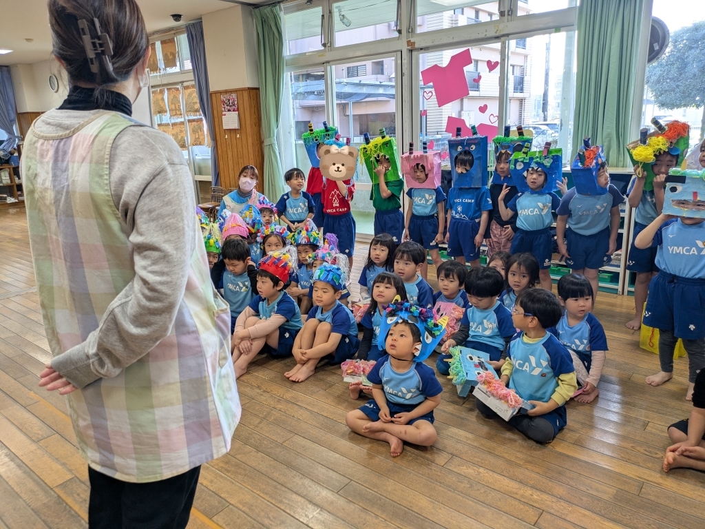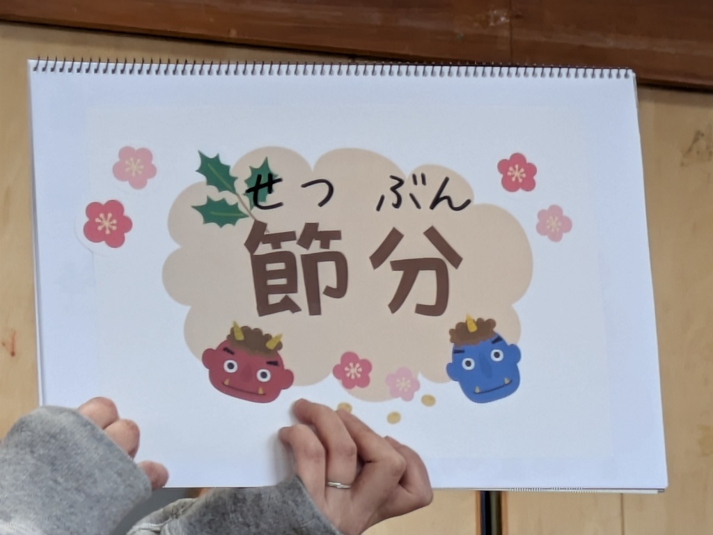最初に先生から節分についてのお話があり、子どもたちは興味津々で聞いていました。