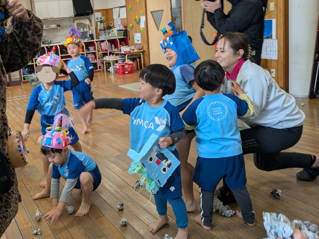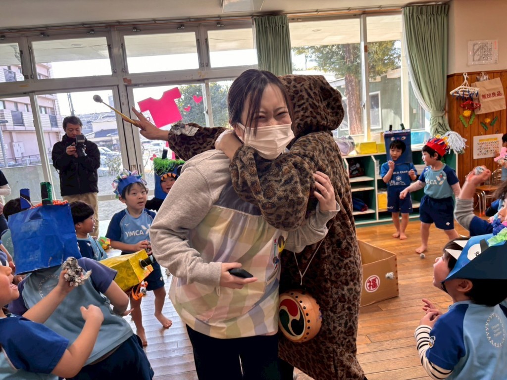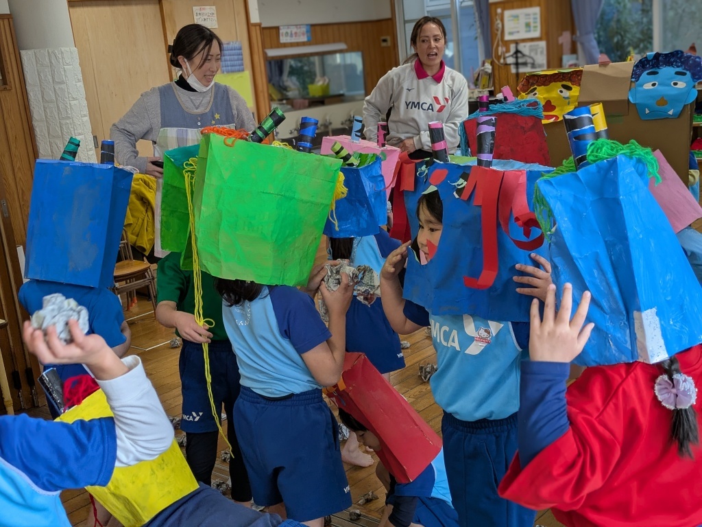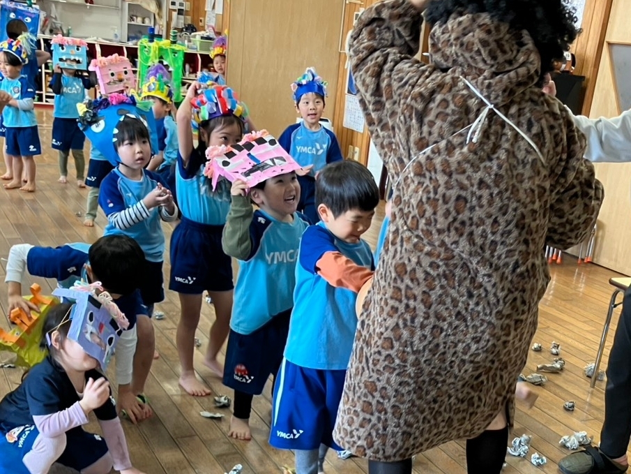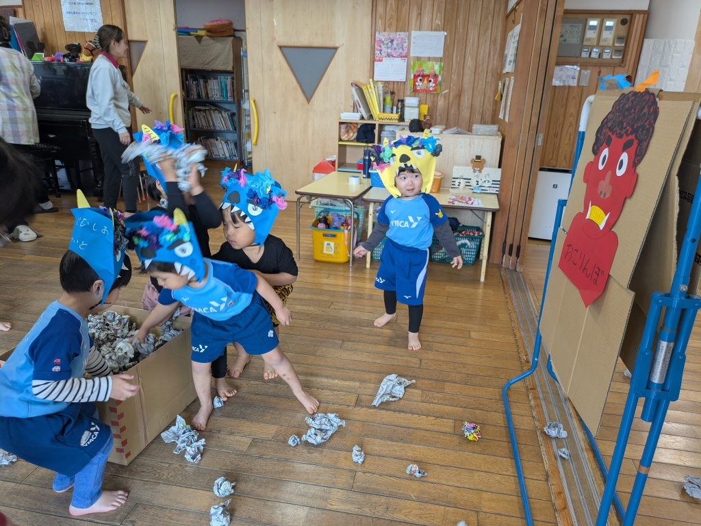 途中、先生が鬼に捕まってしまう場面もあり、みんなで必死に豆を投げる姿がとても頼もしかったです。