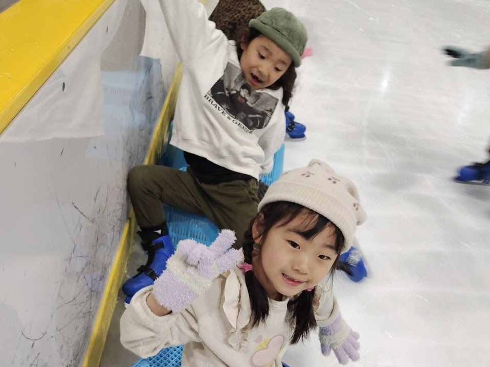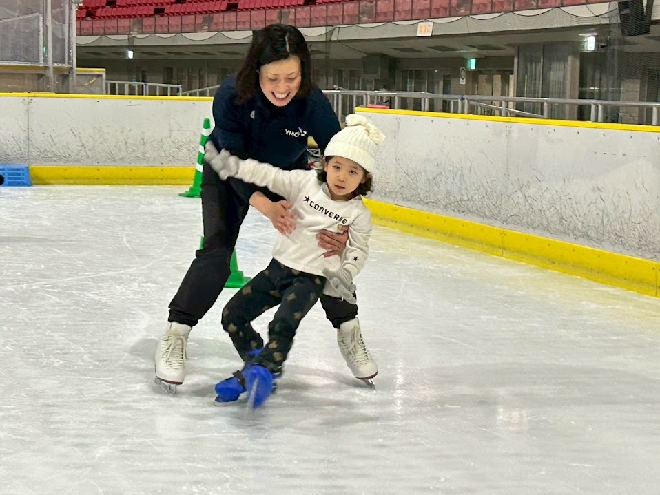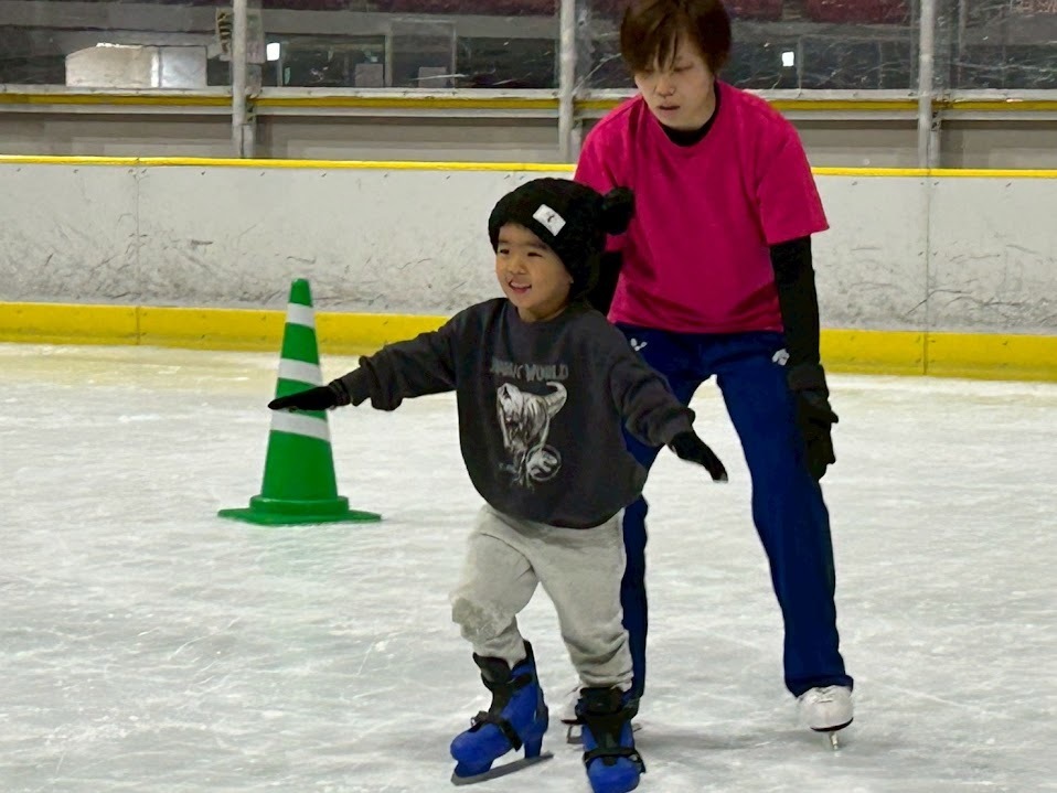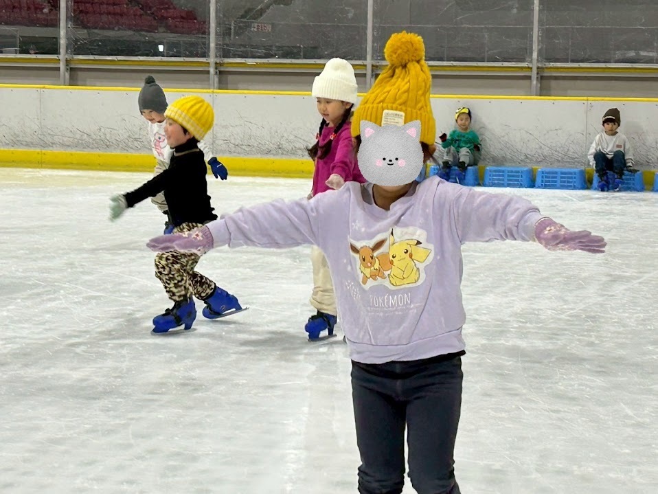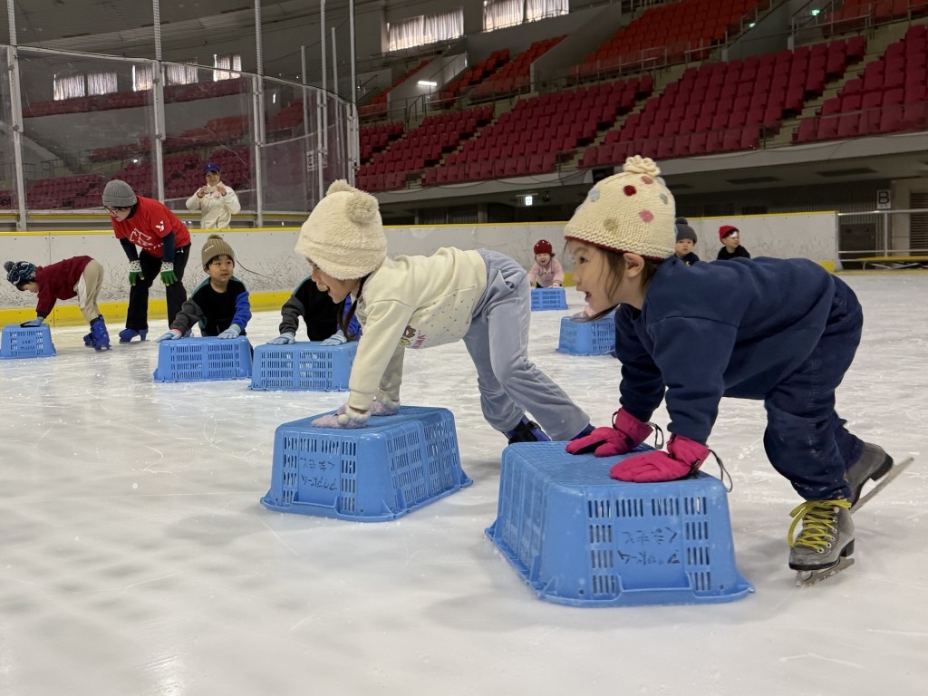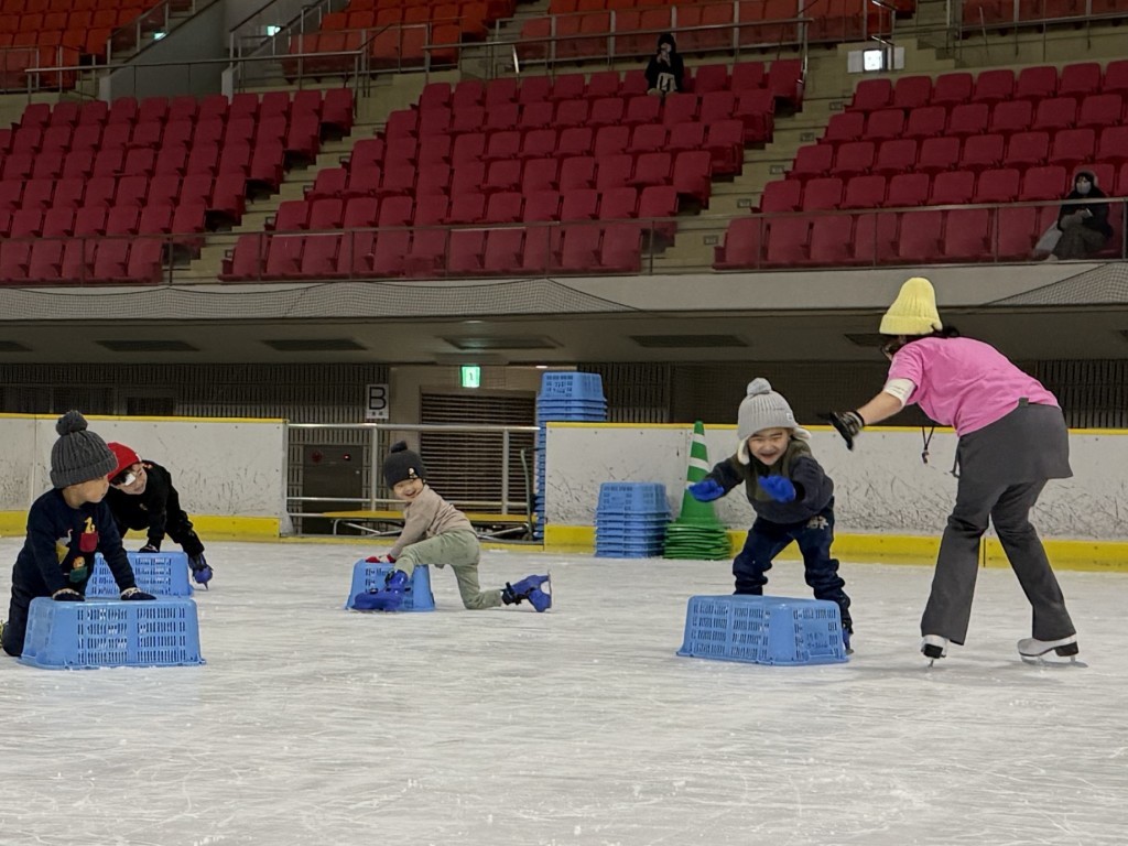 年中・年長児は、日頃の体づくりの成果もあり、数回のプログラムとは思えないほどの上達ぶりでした。氷の上でも思うように体を動かせるようになり、自信あふれる表情でスケートの時間を満喫していました。