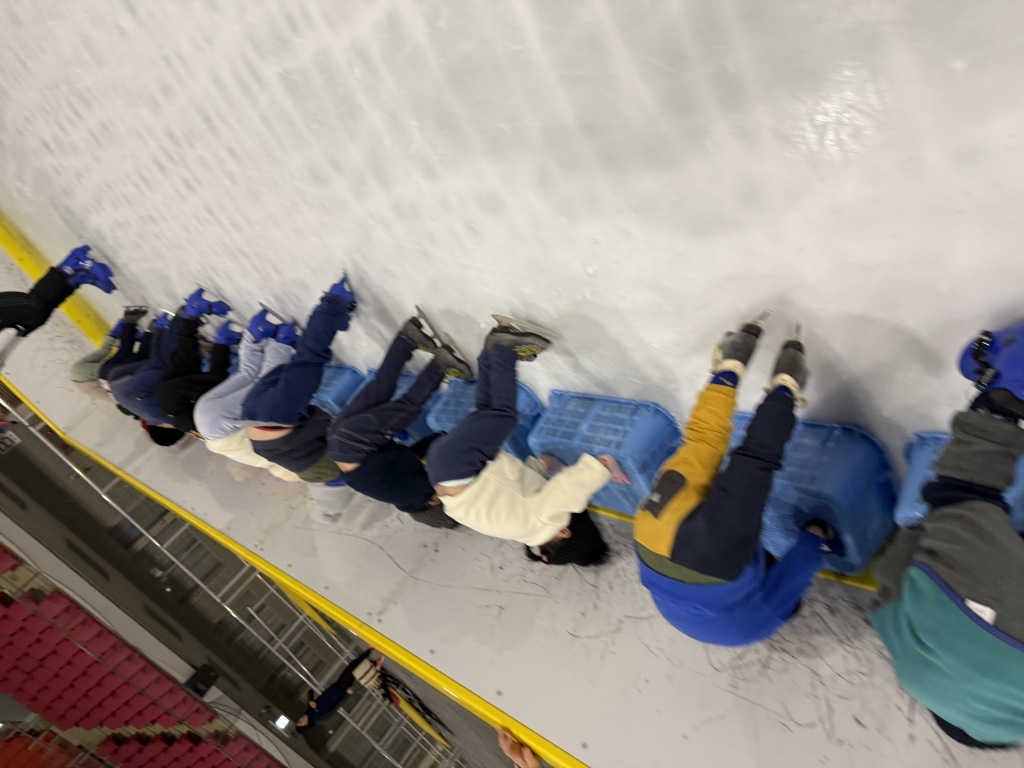 スケートプログラムも3回目となりました。年中・年長児は氷上での歩行が安定し、「コツコツ、スーッ」と両足で惰力滑走をしたり、カラーコーンをくるっと回ったりする姿も見られるようになりました。どんどん上達し、みんな笑顔いっぱいです‼