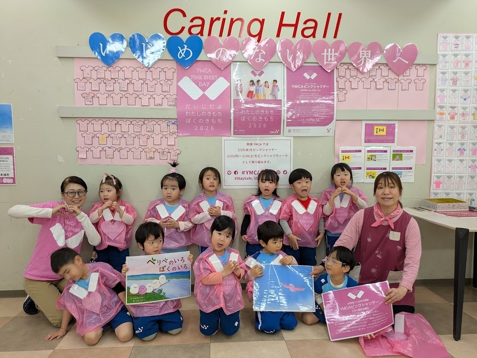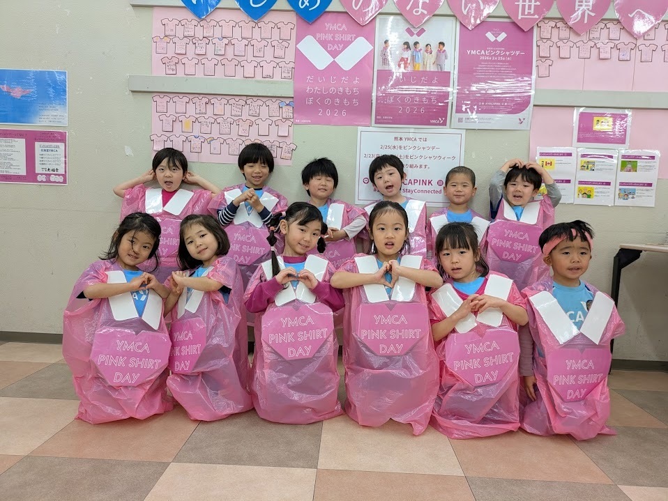園でも子どもたちはピンク色の服や小物を身につけて登園し、やさしい気持ちについてみんなで考える時間を持ちました。