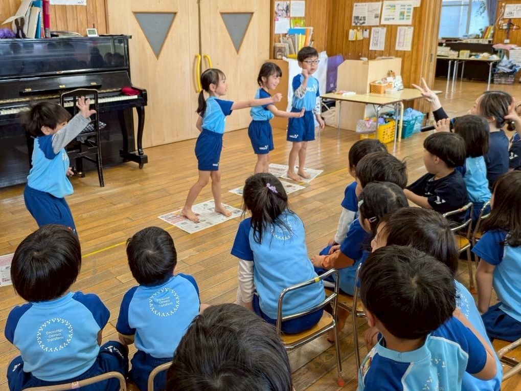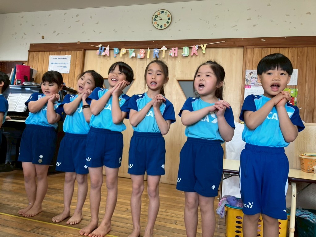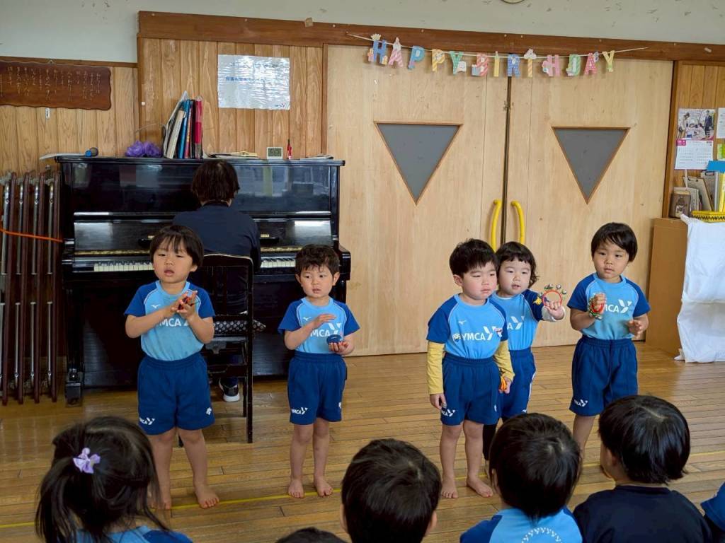 お楽しみの出し物では、みんなで手拍子をしたり笑ったりしながら楽しい時間を過ごしました。誕生児のお友だちも、みんなにお祝いしてもらい、とても嬉しそうでした。