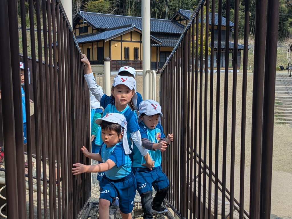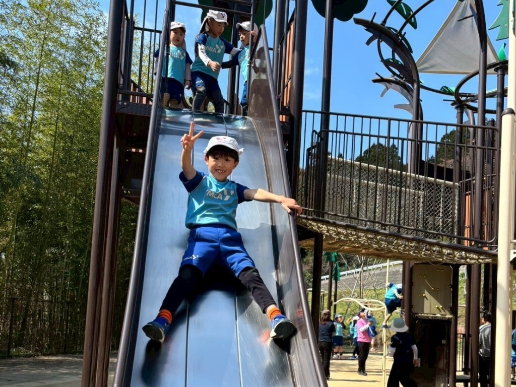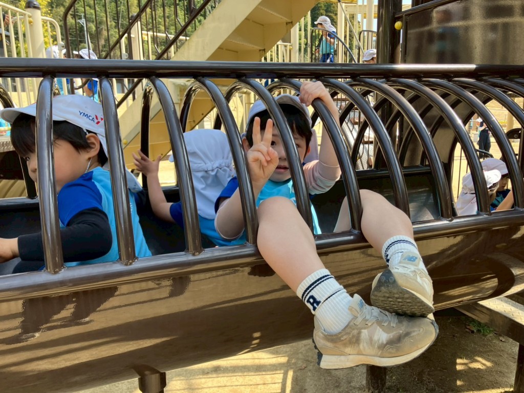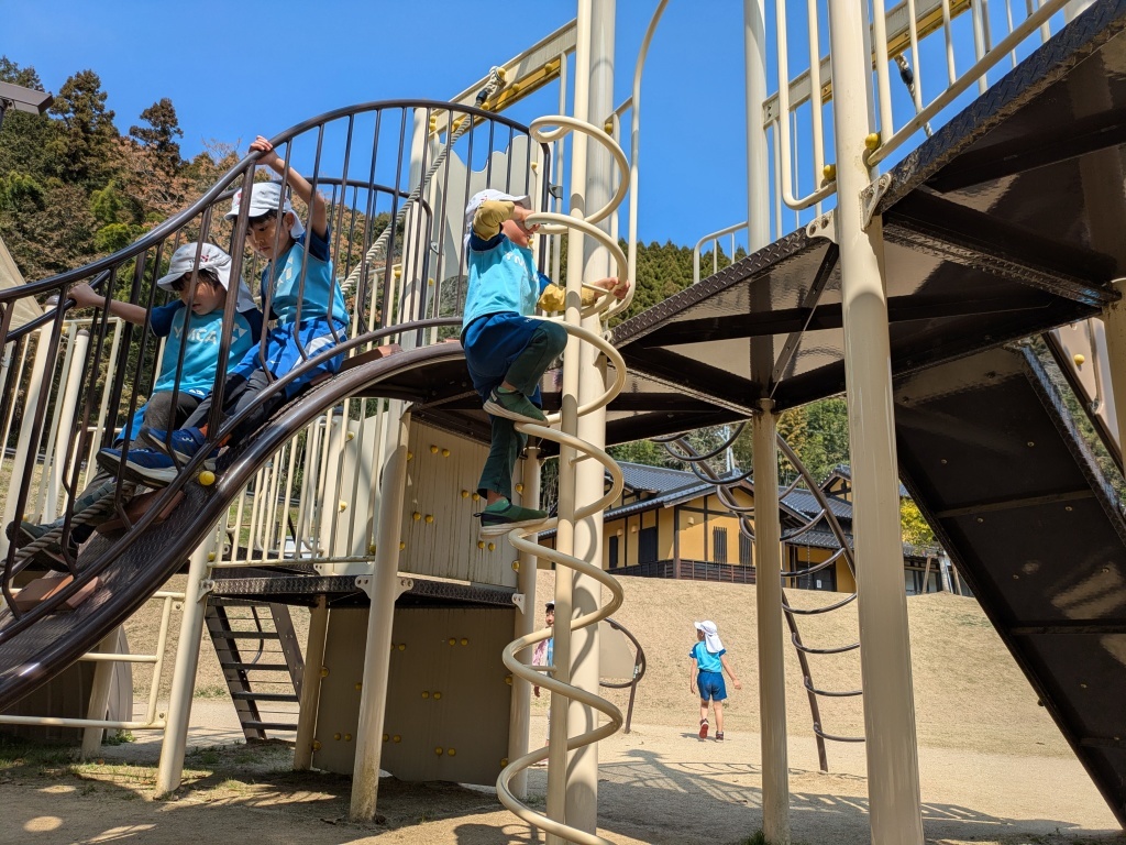 ちょっと大きくてドキドキする滑り台にも、お兄さん・お姉さんと一緒にチャレンジしたり、先生に手伝ってもらいながら挑戦する姿が見られました。勇気を出して滑り終えたあとには、ほっとした笑顔や嬉しそうな表情がたくさん見られました。