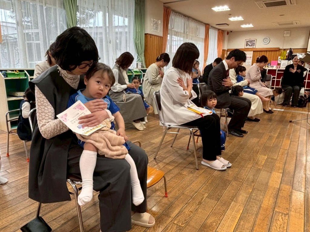 新しく仲間入りした子どもたちは、少し緊張しながらも、保護者の方と一緒に安心した様子で式に参加してくれました。雨の日ならではの、しっとりと落ち着いた雰囲気の中でのスタートとなりました。