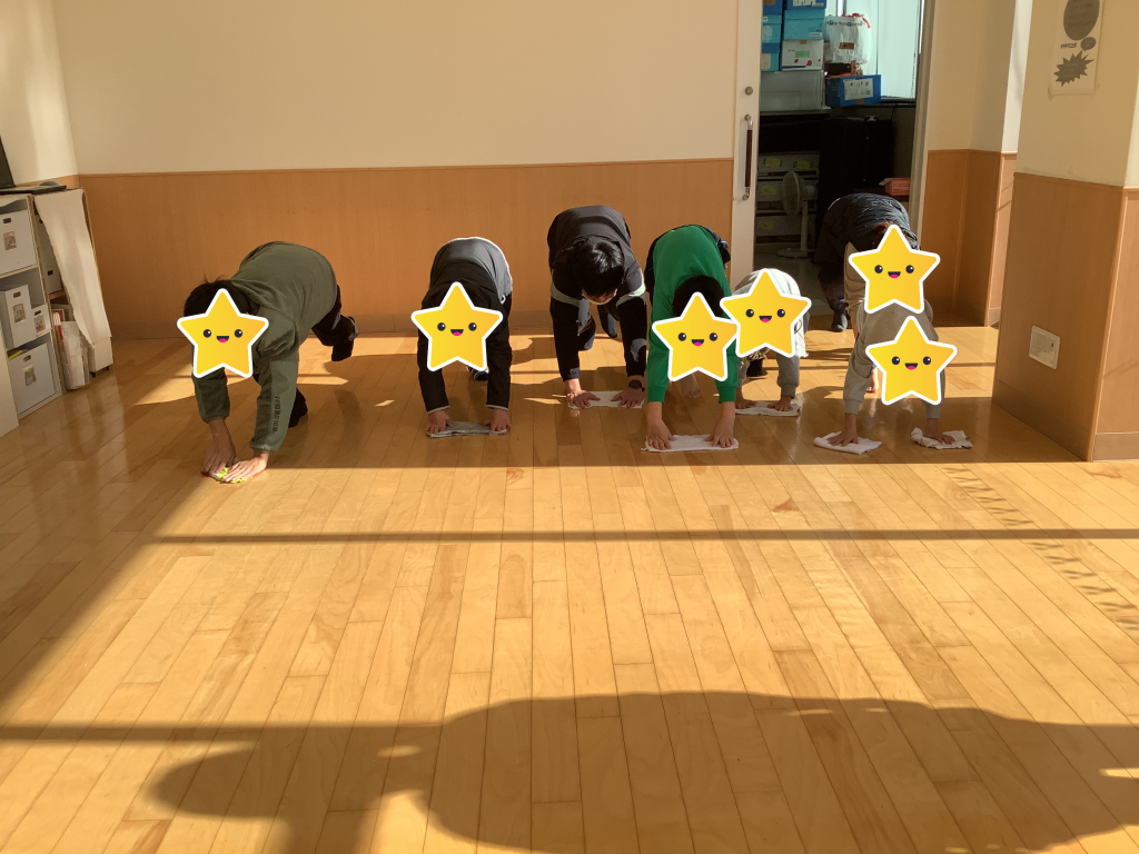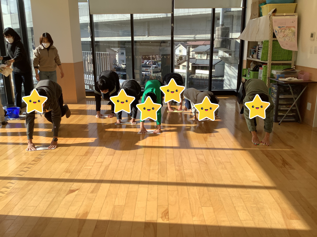 26日の大掃除はみんなで雑巾がけをして、お部屋がピカピカになりました。