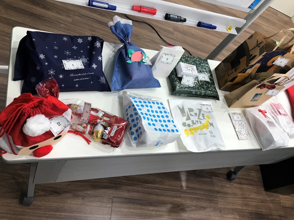 最後にはクリスマスプレゼント交換です。今回は、数字の隠されたツリーから番号を選んでプレゼントをゲット☆地球儀の鉛筆削り!!とってもかわいいですね。