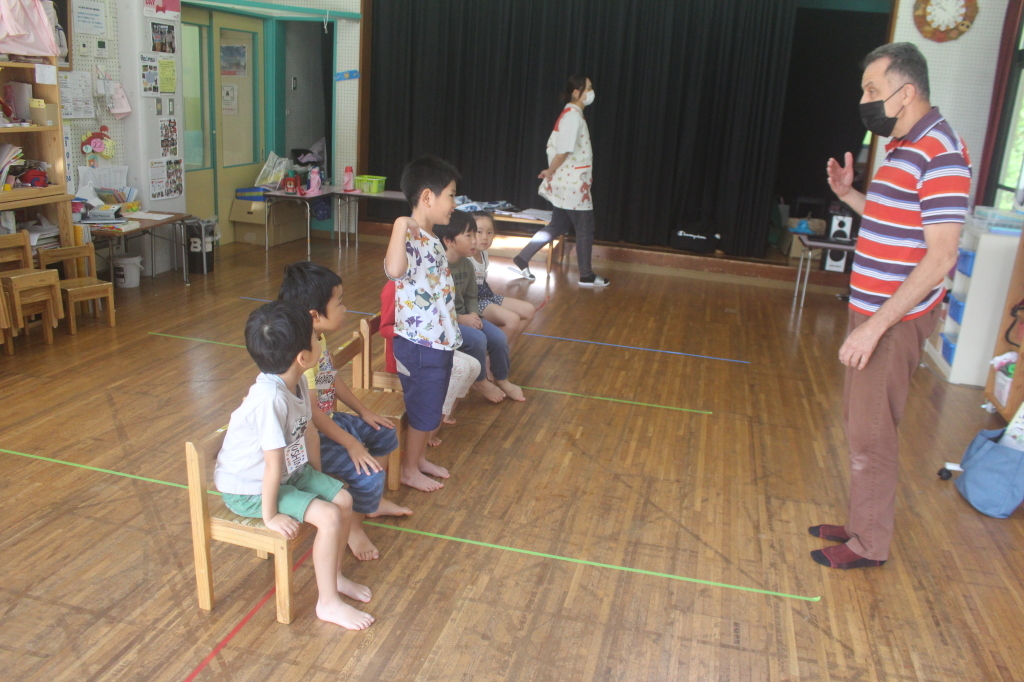 今日はみんなが楽しみにしていたえいご教室の日でした。みんな大きな声でカルロス先生からの質問に上手に答えていましたよ!将来が楽しみです!!