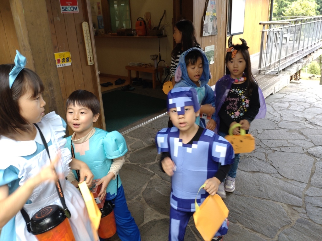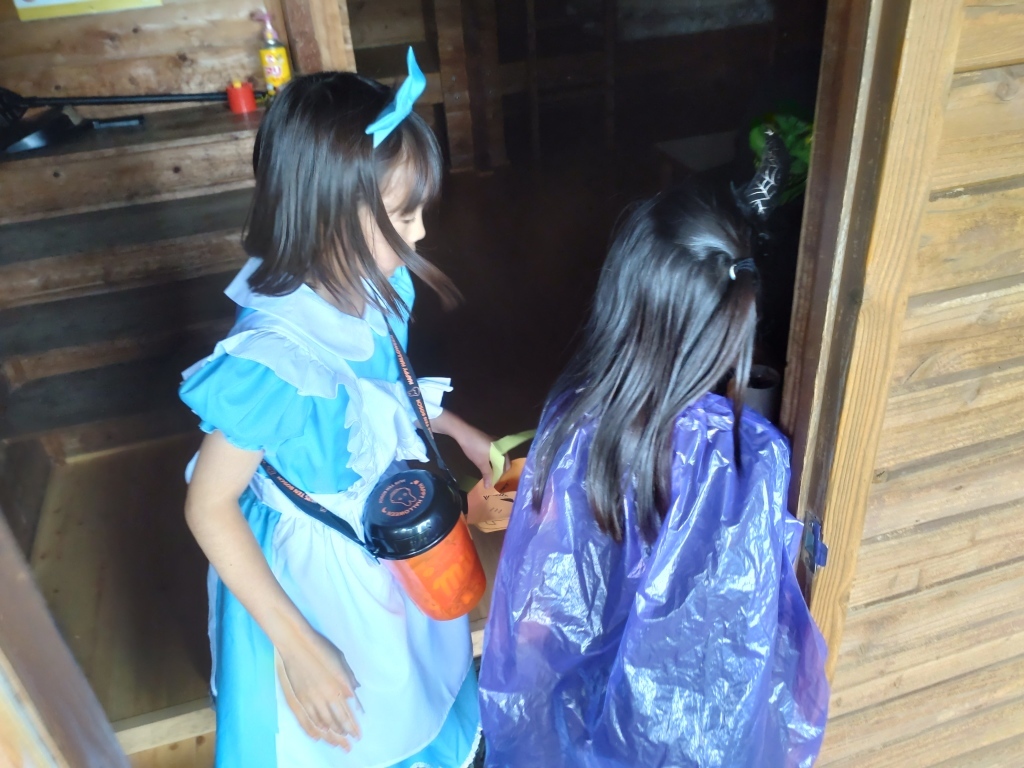 キャビンをまわって"Trick or treat!!!" パン屋さんにお菓子をもらったり