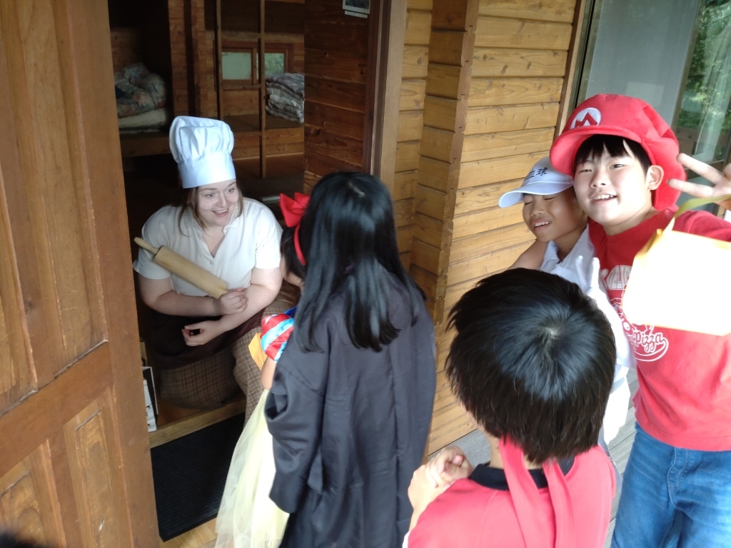 ちょっぴりドキドキしながらのKnock, knockは毎年のことながらとても楽しかったです!阿蘇キャンプの自然の中、こどもたちの歓喜と笑い声が響き渡りました。