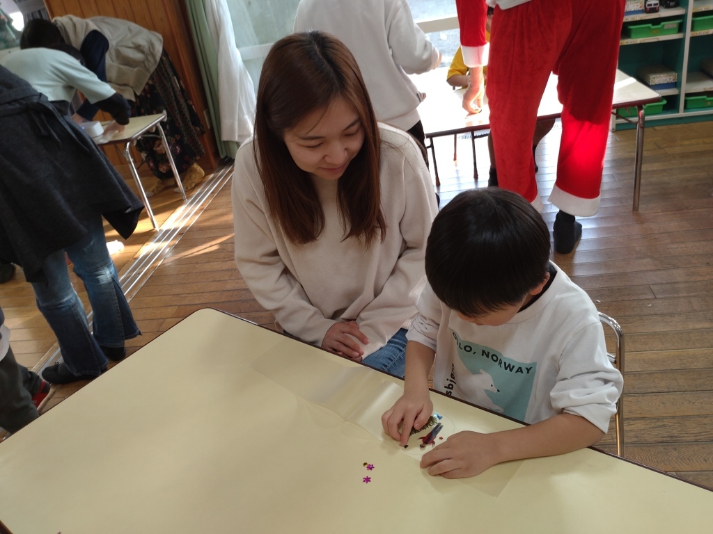 今年もご家族の皆さまにご参加いただき、賑やかで楽しいクリスマスプログラムとなりました。毎年同じクラフトをつくると、1年間の成長に胸がキュン♡となります。