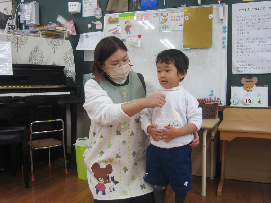 1月生まれのお友だちは年少児1名。クラスで行った誕生会では、元気にお返事をしてみんなの前に登場です。担任の先生からのインタビューやプレゼント渡しに、はにかみながらも、とても嬉しそうな表情を見せてくれました。1月生まれのお友だち、健康が守られ素敵な1年となりますように。おめでとうございます!