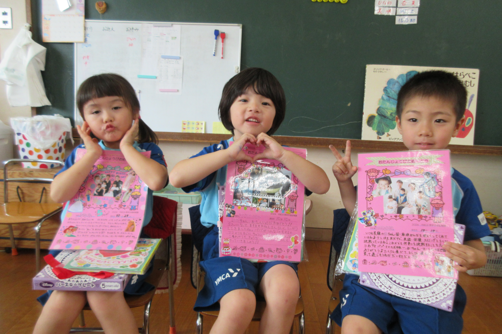 10月生まれの誕生会を行いました。10月生まれは年中組3名、年長組1名です。