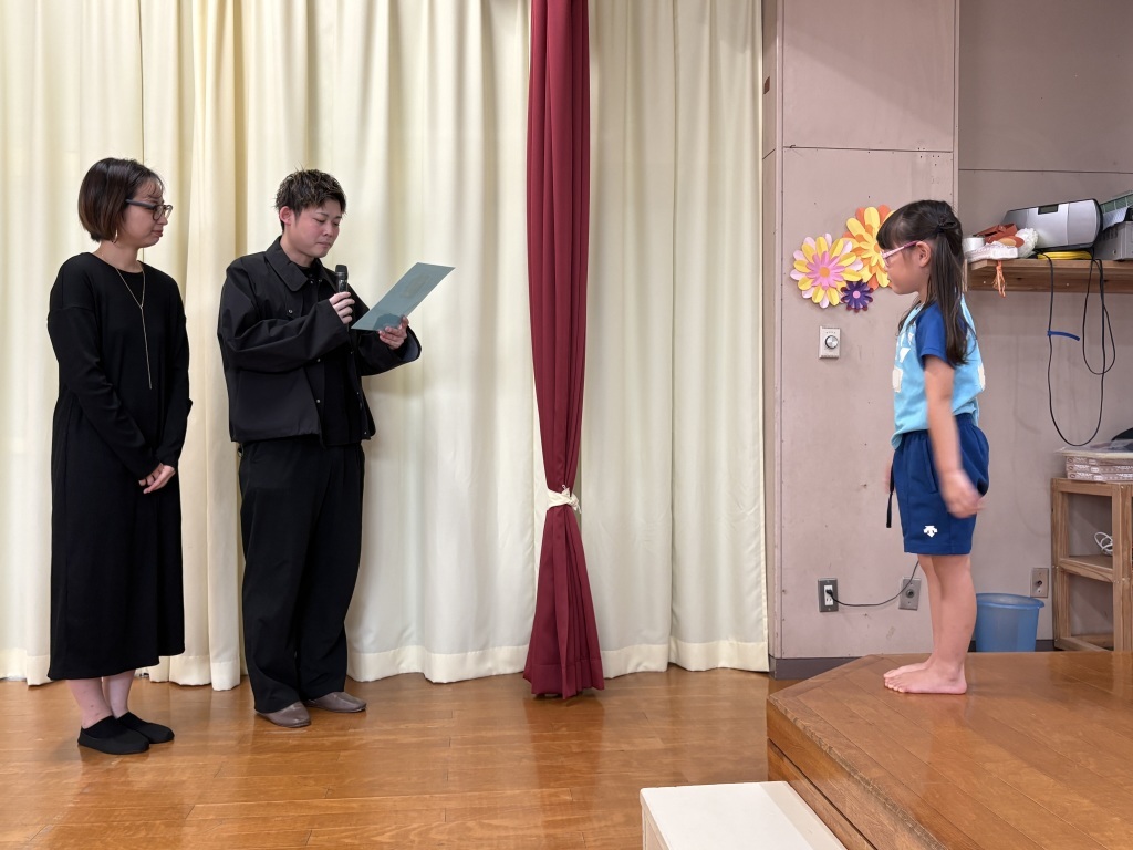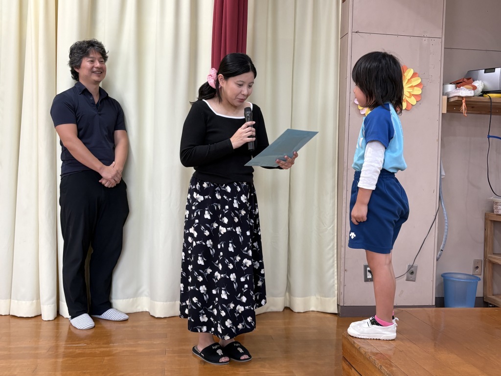 年長さんは保護者の方にもご参加いただき、直接メッセージを読んでもらいました。保護者の方もメッセージを読みながら気持ちが入り涙ぐむ姿もあり、保育者も我が子のことを思いながら生まれてきてくれたことへの感謝を感じました。子どもたちも笑顔で嬉しそうでした。