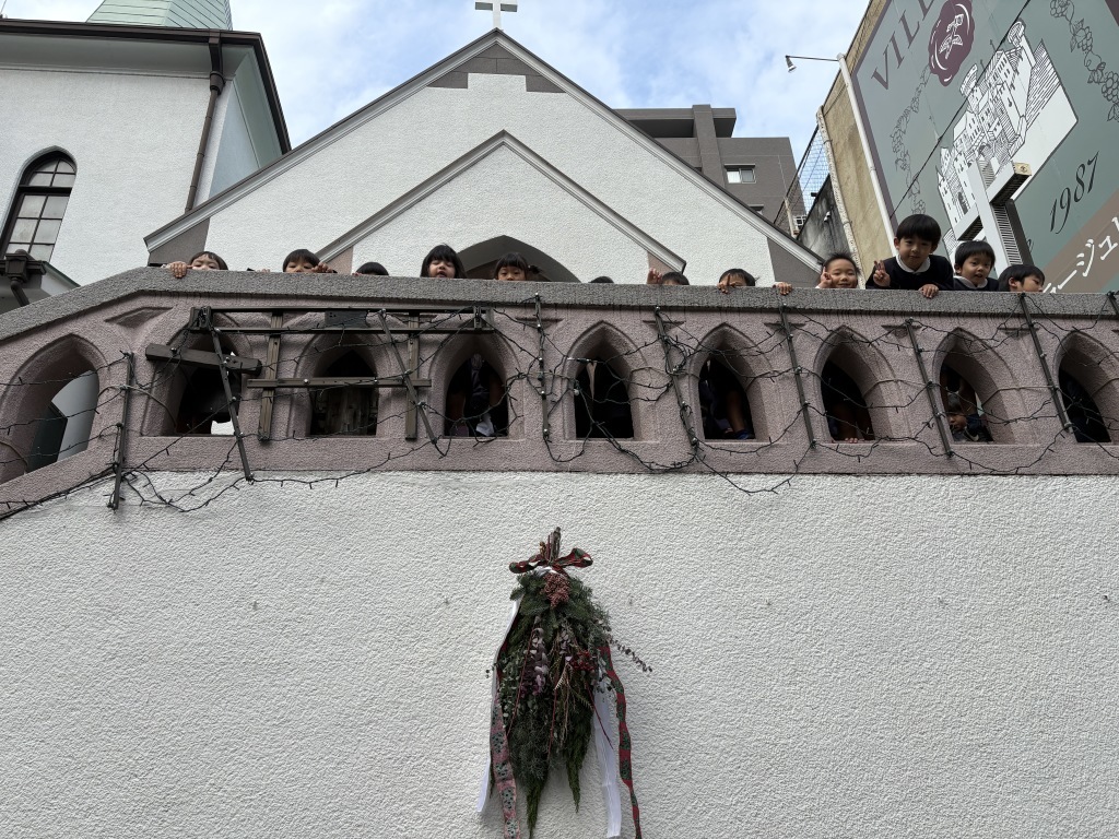 今年度のクリスマス会を行う、日本福音ルーテル熊本教会まで、年中・年長の子どもたちで歩いて行ってきました。