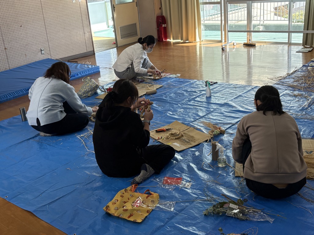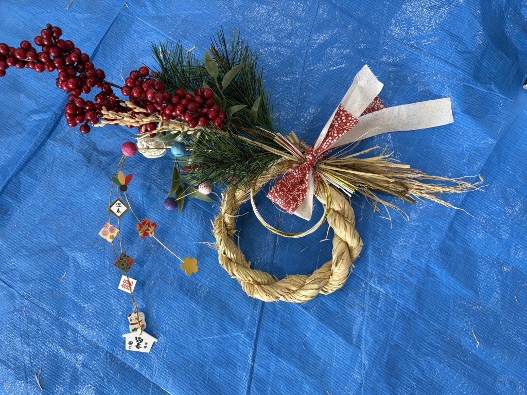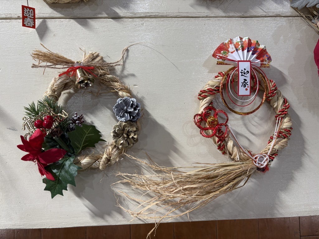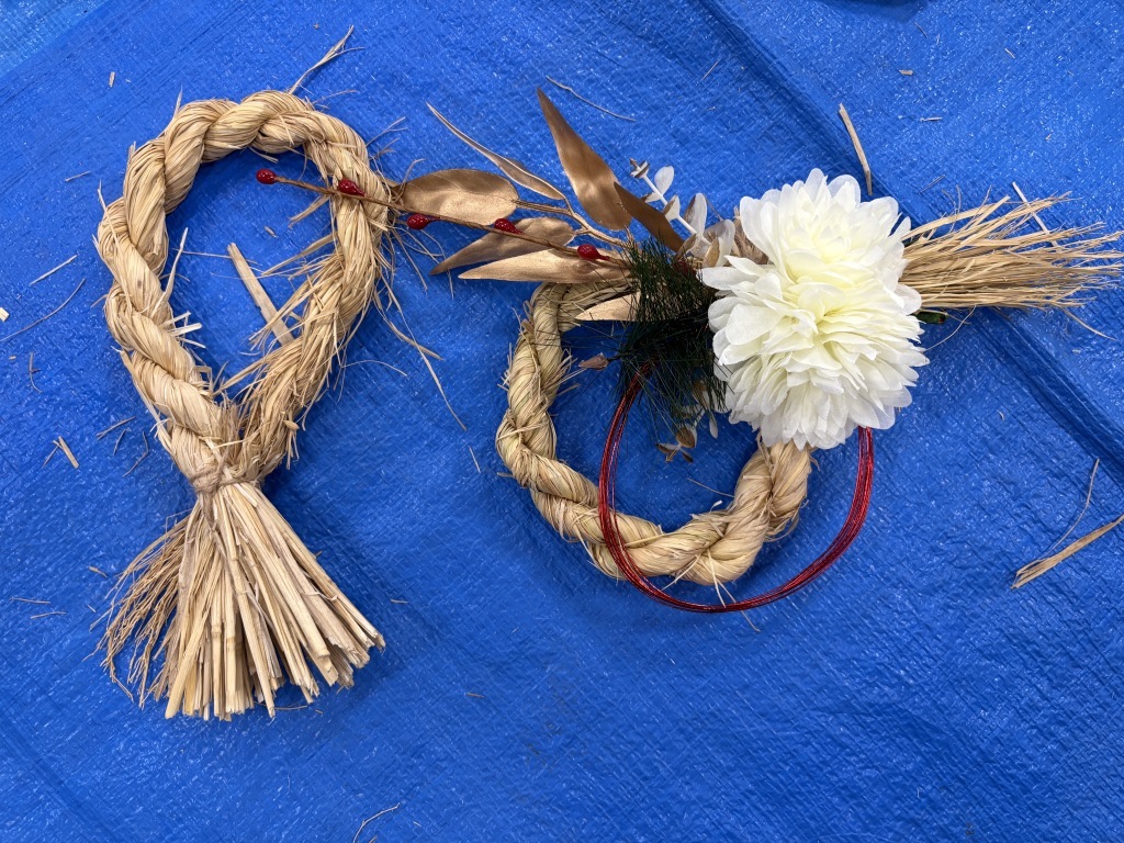 日本の伝統行事である「しめ縄づくり」と、季節を感じる「リースづくり」を楽しんでいただきました。