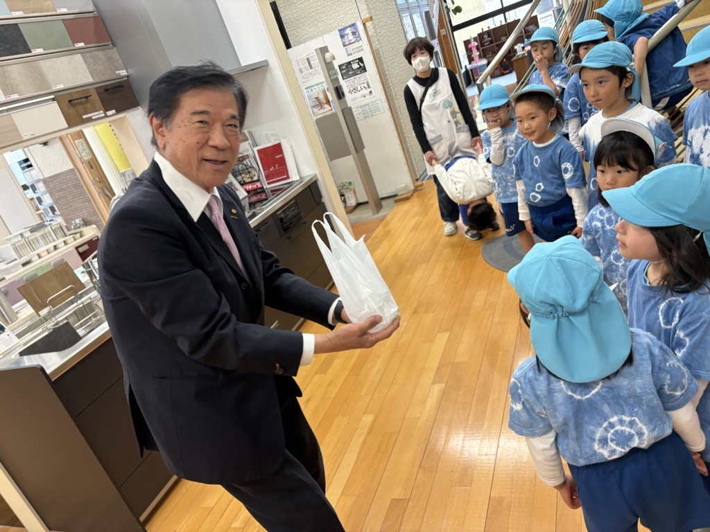 午後からは搗いたお餅を日ごろからお世話になっている近隣の方へ年長組のみんなで届けに行きました。