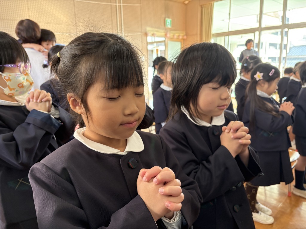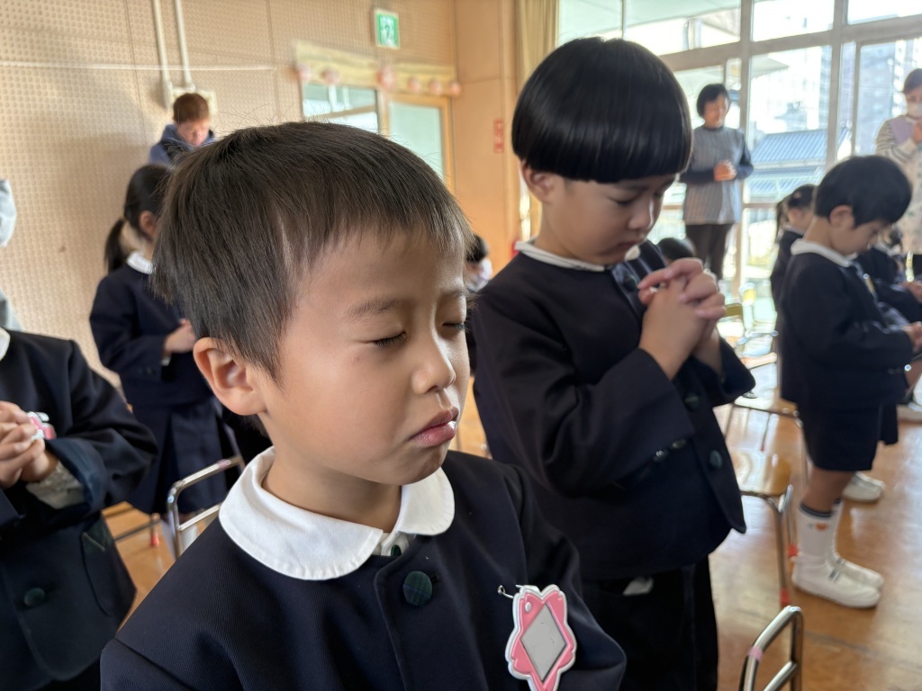 終業式では、園長先生から冬休みの過ごし方や新年の挨拶のお話があり、子どもたちはしっかりと話を聞きながら、新しい年を迎える期待に胸を膨らませていました。