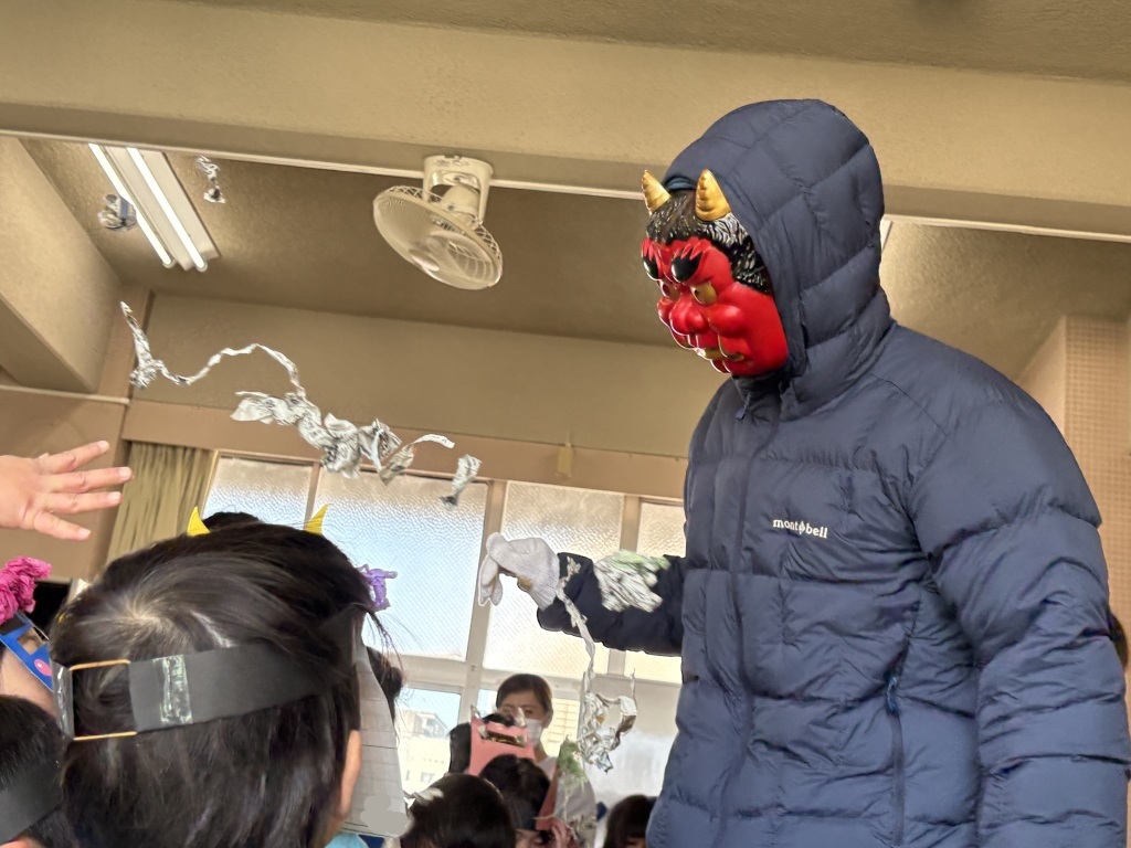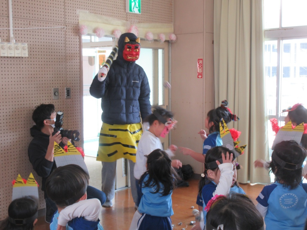 本日2月3日(月)、幼稚園でも節分の豆まきを行いました。