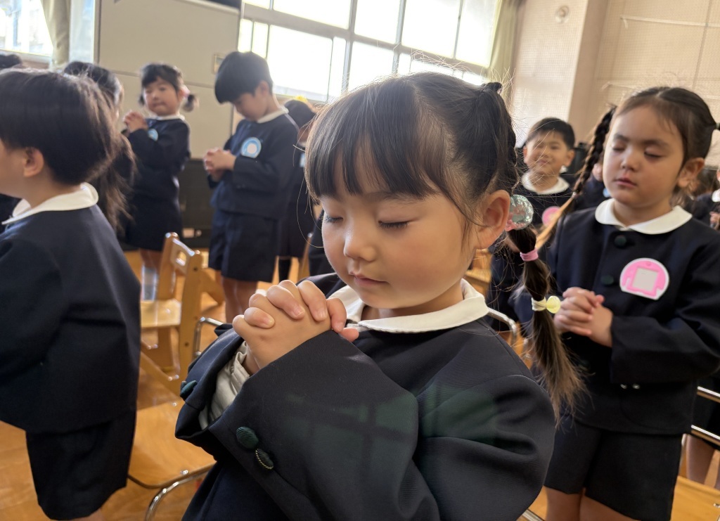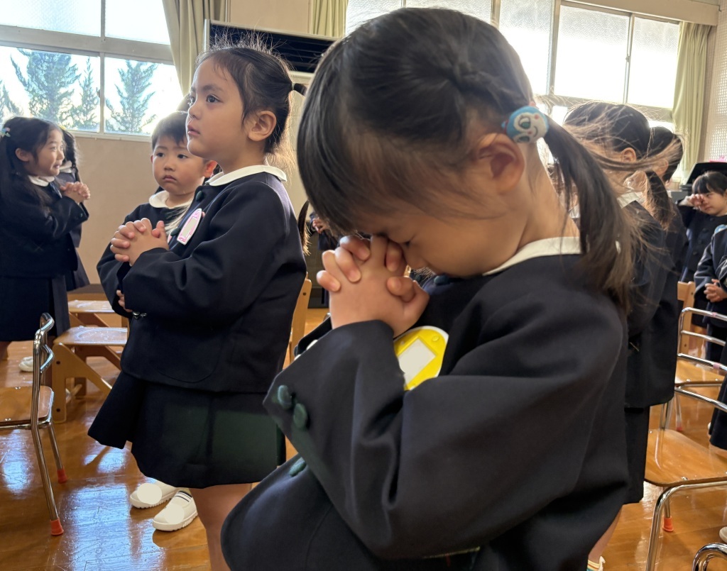 始業式では、園長先生のお話をしっかりと聞く姿がとても立派でした。