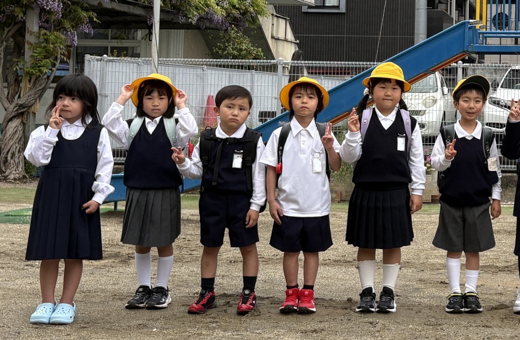 ちょっぴり大きめの制服に身を包み、ピカピカのランドセルを背負って、卒園児のみんなが幼稚園に顔を見せに来てくれました。