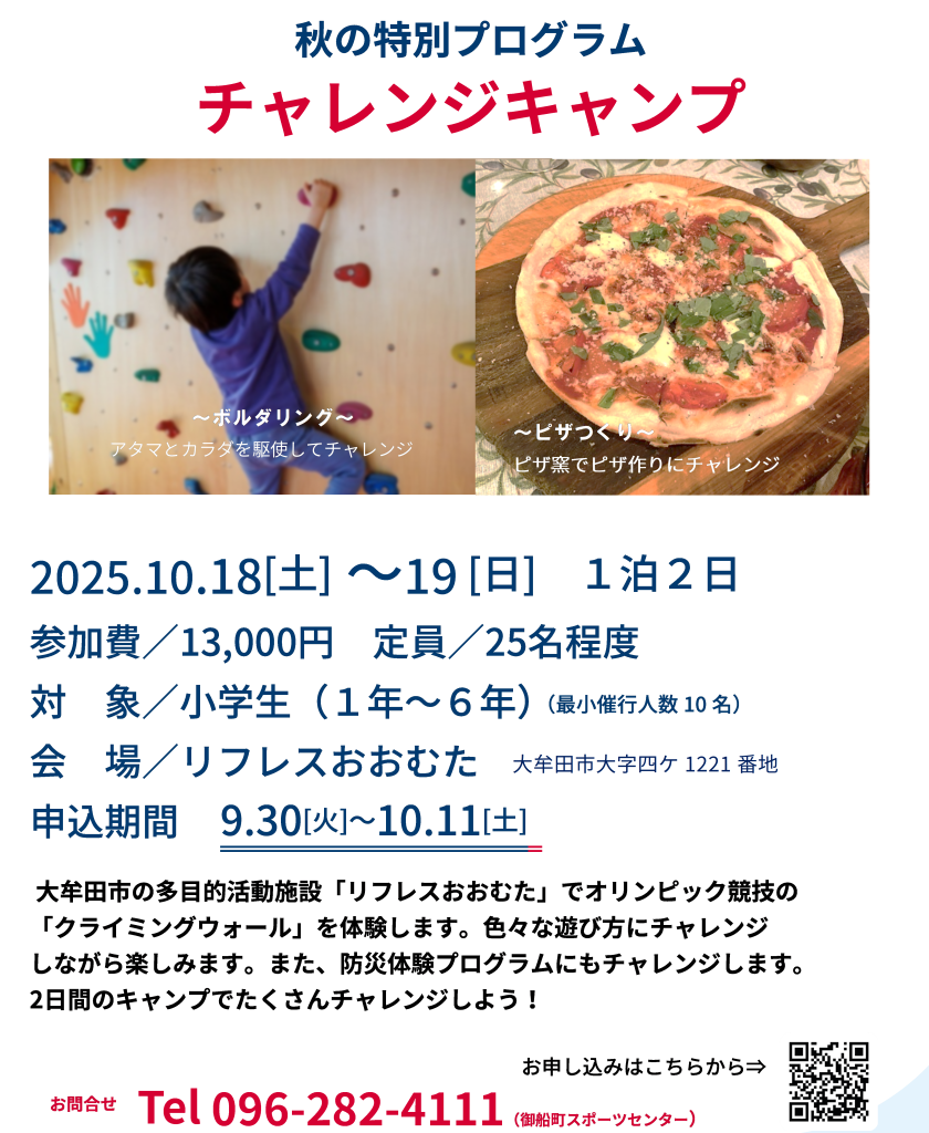 秋の特別プログラム チャレンジキャンプ 参加者募集!
