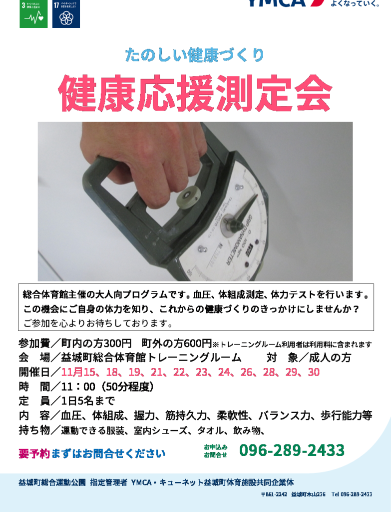 この機会にご自分の体力を知り、今後の健康づくりのきっかけにしませんか?皆さまのご参加をお待ちしています!