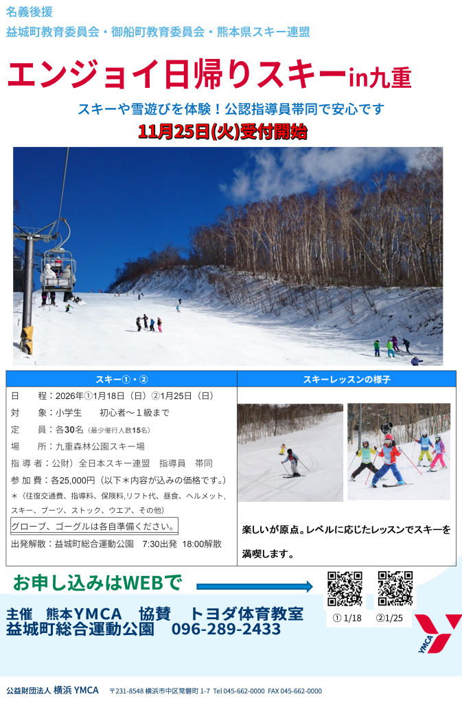 「エンジョイ日帰りスキー㏌九重」参加者募集!