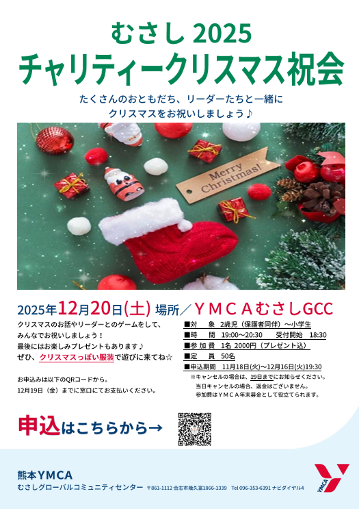 むさしグローバルコミュニティセンター〒861-1112 合志市幾久富1866-1339Tel 096-353-6391(音声ガイダンス4) Fax 096-248-6354email musashi@kumamoto-ymca.org