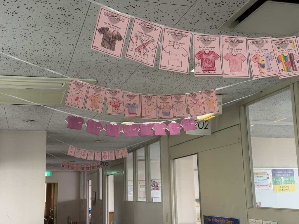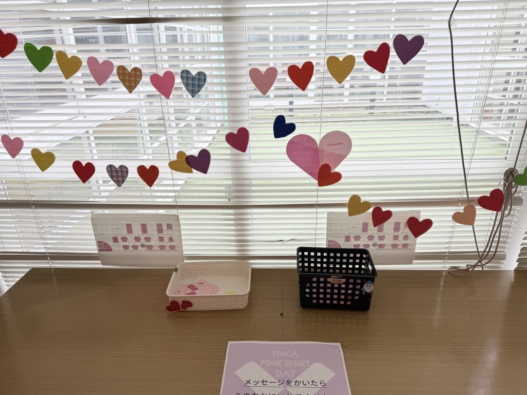 YMCAむさしGCCでもメッセージ書きやリーダーがピンクを身に着けるなど、ピンクシャツデーに関する様々な取り組みを行っています。