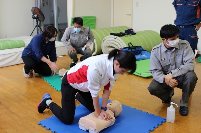熊本市東消防署小山出張所の職員の皆さんにお越しいただき、救急対応・消防訓練を開催しました。心肺蘇生法の実習および避難訓練・消火訓練のレクチャーを受け、心新たに新年度の危機管理および安全運営につなげてまいります。