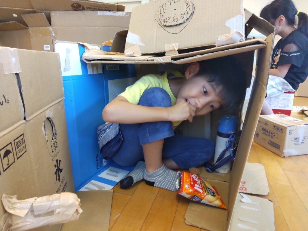 【ながみねお預かりサマースクール】段ボールハウス作りに挑戦!