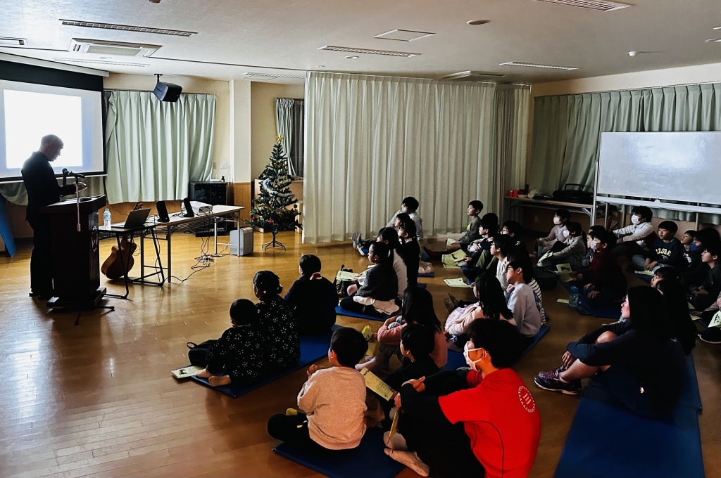 希望ヶ丘キリスト教会 本堀秀一牧師に「クリスマスの鐘」と題してお話しをしていただきました。優しい兄弟のお話しに、心がほっこりあたたかい気持ちになりました。