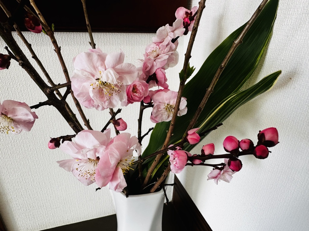 成人プログラムの会員の方より、桃の花をいただきました。
