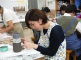 本日10/8(水)は”一輪挿し(徳利)”の高台を作り完成させます。上の方が細くなっているので、シッタという道具を使い底をつくります。シッタを使うのは初めてですが、作業できるようにセットした後は、皆さんかなり手際もよくなりました。