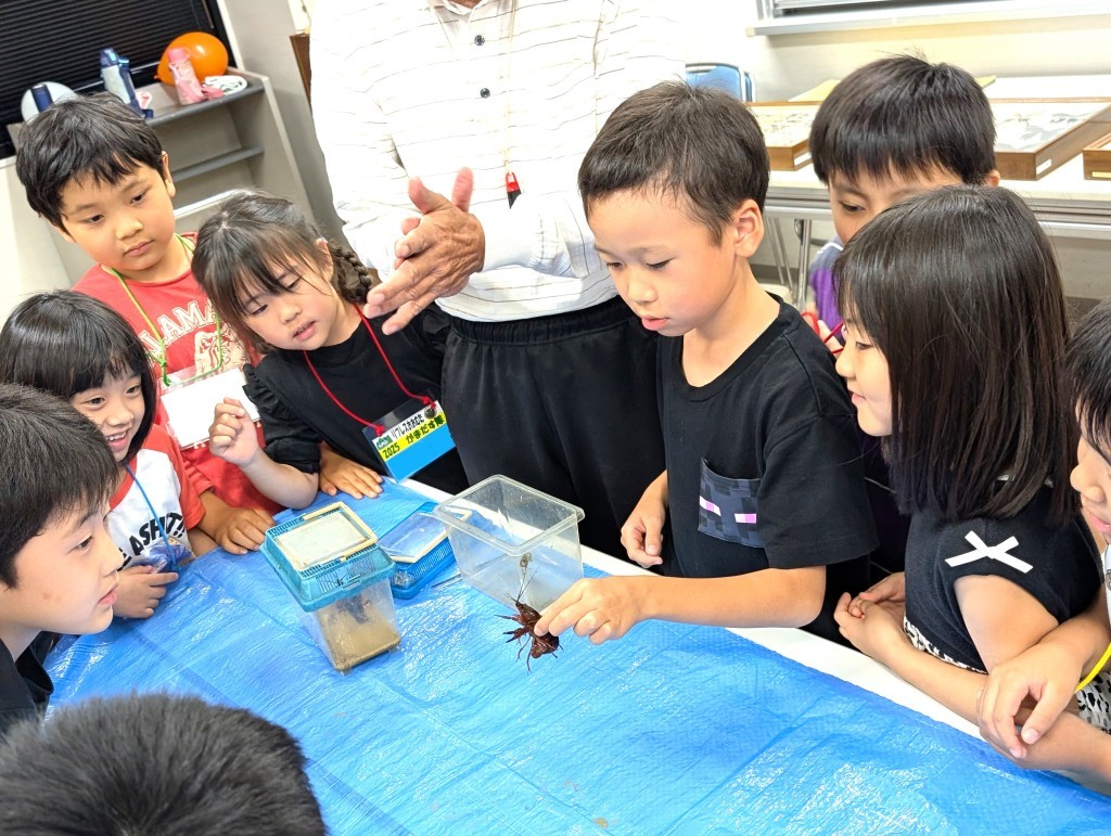 先生が生き物を取り出すとみんな興味津々、近くまで顔を寄せ、「これは?これは??」とたくさん質問し、強そうな生き物が出てくれば「きゃっ~~~~~」っとカラダを思いきりそらしたりする場面もあったりと、様々な表情を見せてくれ、ガッカリだった隊員たちも、先生方のおかげで元気いっぱい、笑顔で楽しんでくれました。