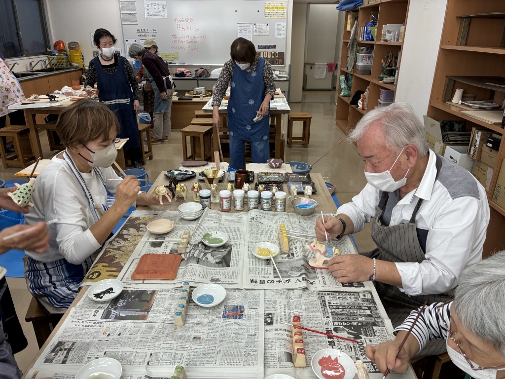 陶芸教室の最後となる今回は仕上げ作業の「絵付・釉薬掛け」を行いました。