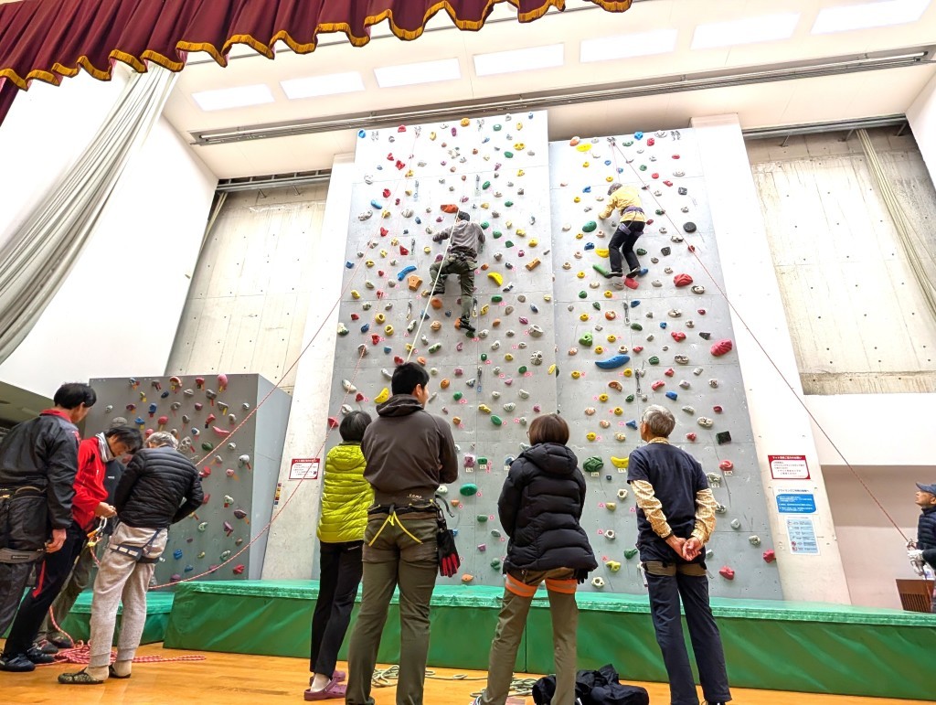 クライミングというスポーツについて説明や諸注意のあと、トップロープクライミング(上からロープで確保された状態で行う登り方)にてクライミングを体験していただきました。