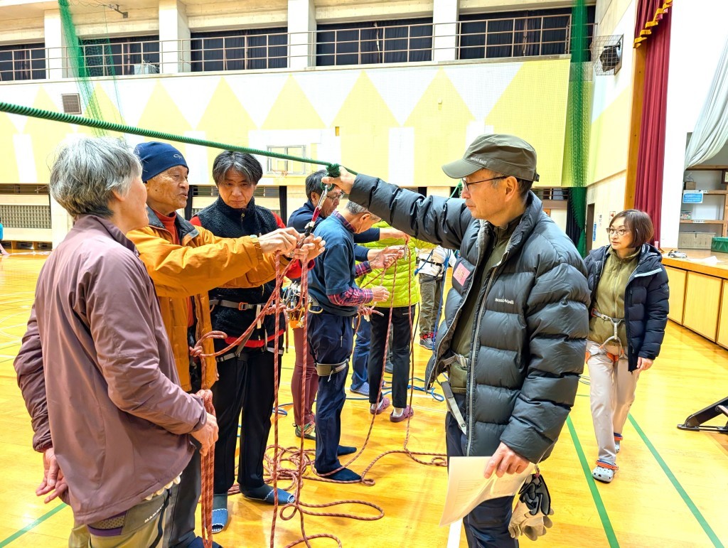 みなさん早めに来られ、講習開始前に「8の字結び」の復習として何度も何度もロープで練習を行われていました。