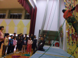 最初にボランティアさんから説明を受け、そのあとに準備体操。ハーネスを装備して壁を登ります。